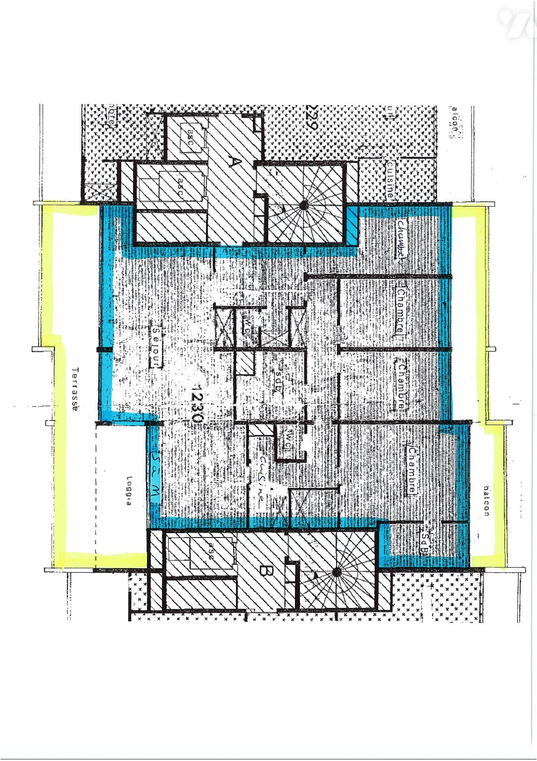 Appartement de 131,41 m² LC à rénover, composé d'une entrée desservant un séjour avec terrasse de 32 m² à l'ouest, cuisine, 4 chambres avec balcon exposées est, 2 salles de bains, 2 wc, une grande cave et un emplacement de stationnement (double).